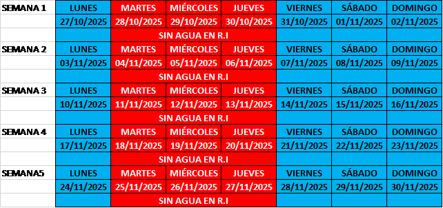 AVISO IMPORTANTE: CORTE SUMINISTRO PROGRAMADO DEL 13 AL 17 DE ENERO. SE RECOMIENDA REPROGRAMEN RIEGO PARCELAS
